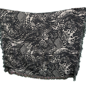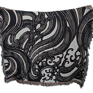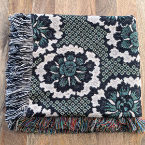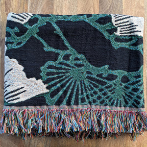 The chrysanthemum blanket is so stunning - I've been keeping mine in my office for when it gets a bit chilly. I have the Fiesta blanket too, same size, but the chrysanthemum one has white fleece on the back. Also, my review photo isn’t showing the color right- it’s definitely a golden yellow and not greenish. Shipping was faster than I expected to the west coast, esp with these shipping from London. Highly recommended!