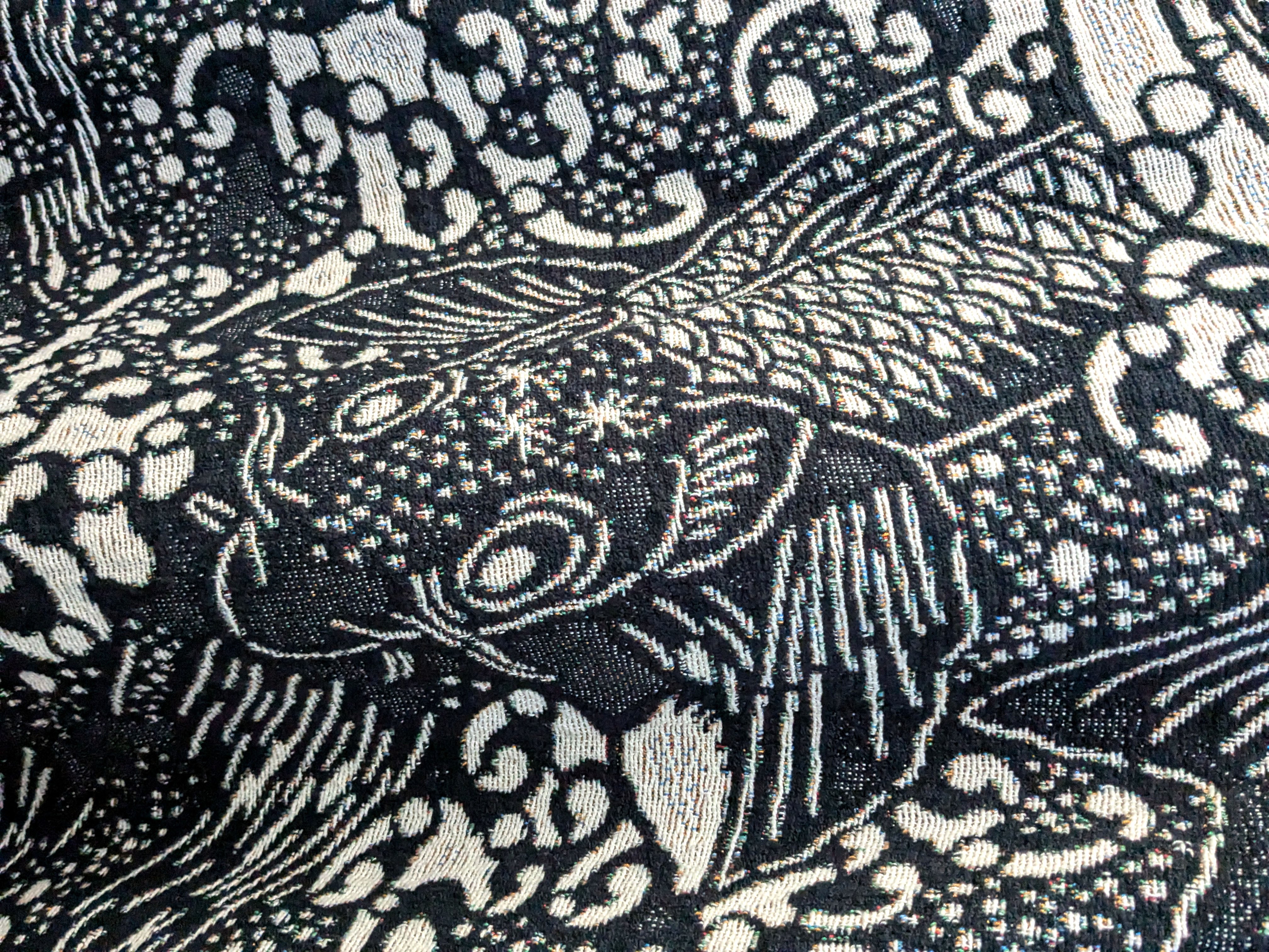 • Produced on a machine called a Jacquard loom, they’re made by weaving together a combination of monochrome and solid-coloured cotton yarns.