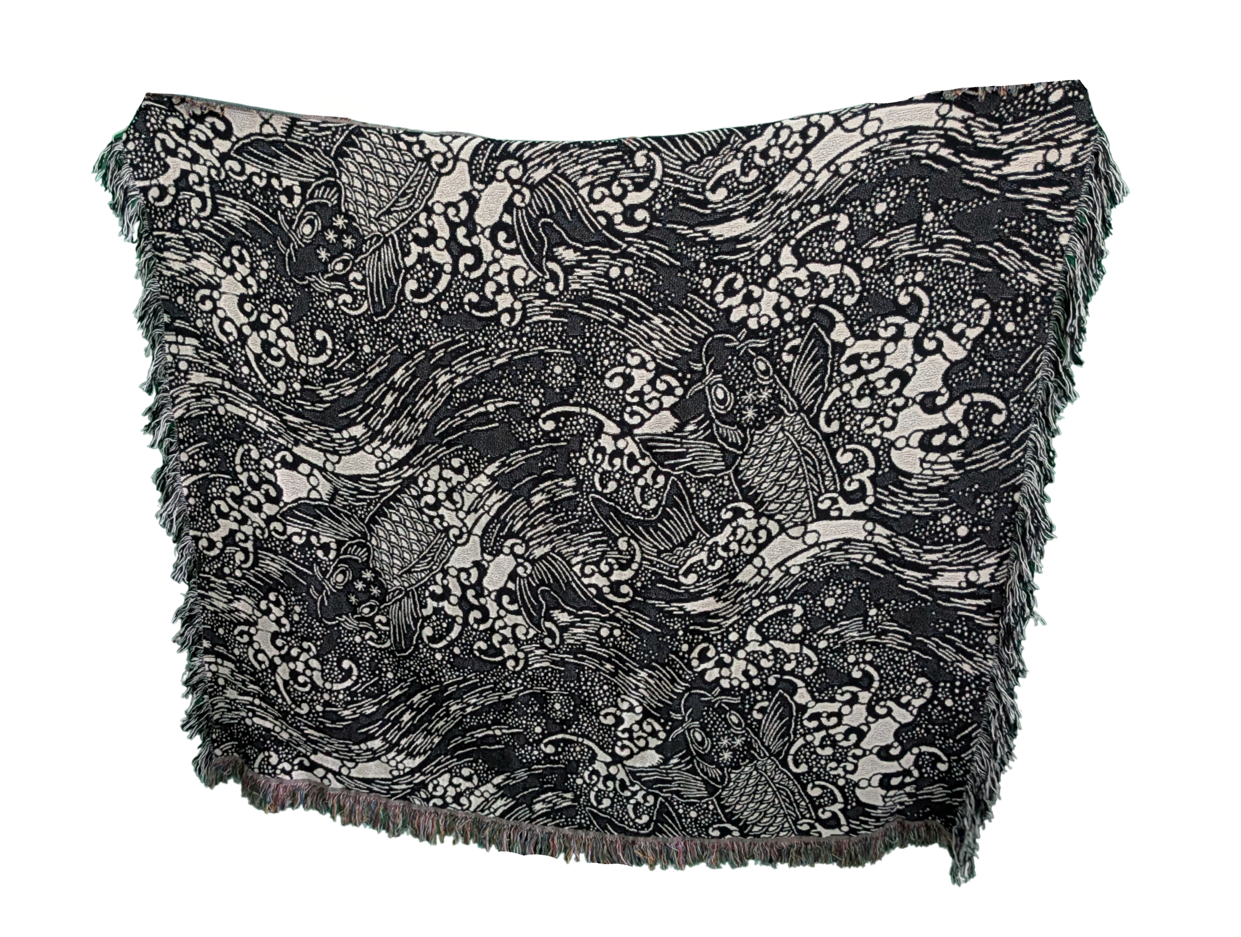 Jacquard Woven Blanket - Koi (Dark Blue/White)