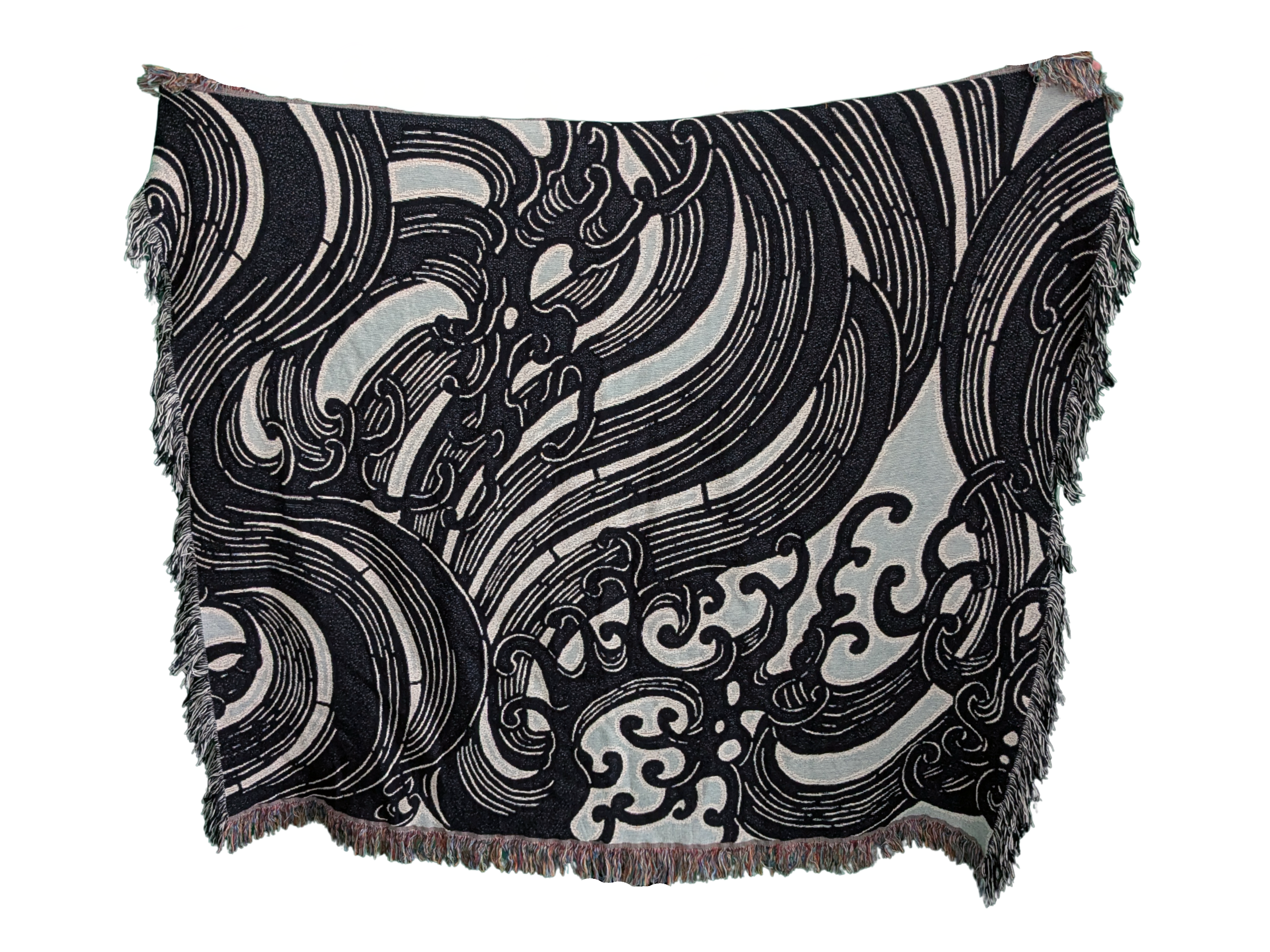 Jacquard Woven Blanket - Waves (Dark Blue/Light Blue/White)