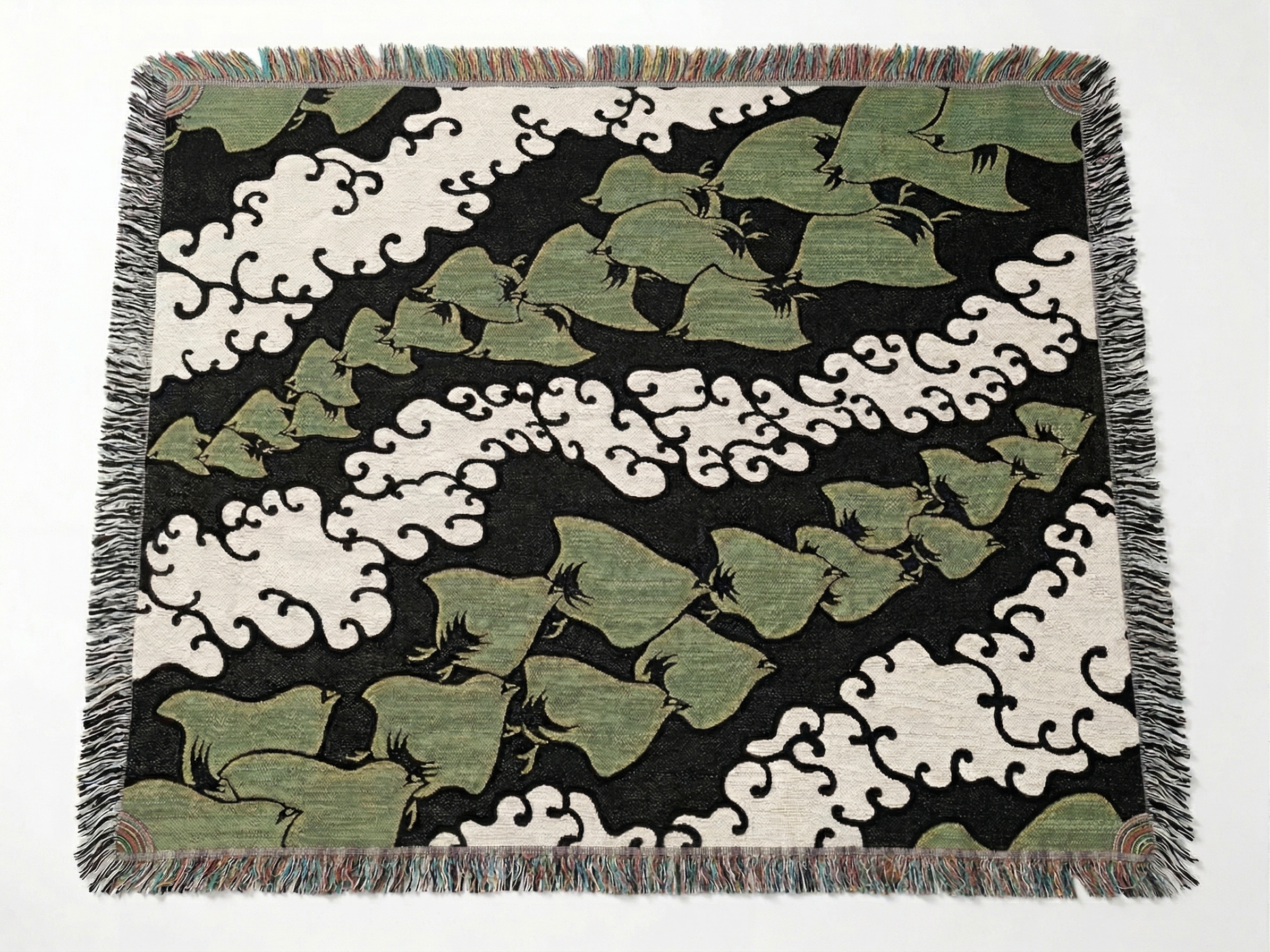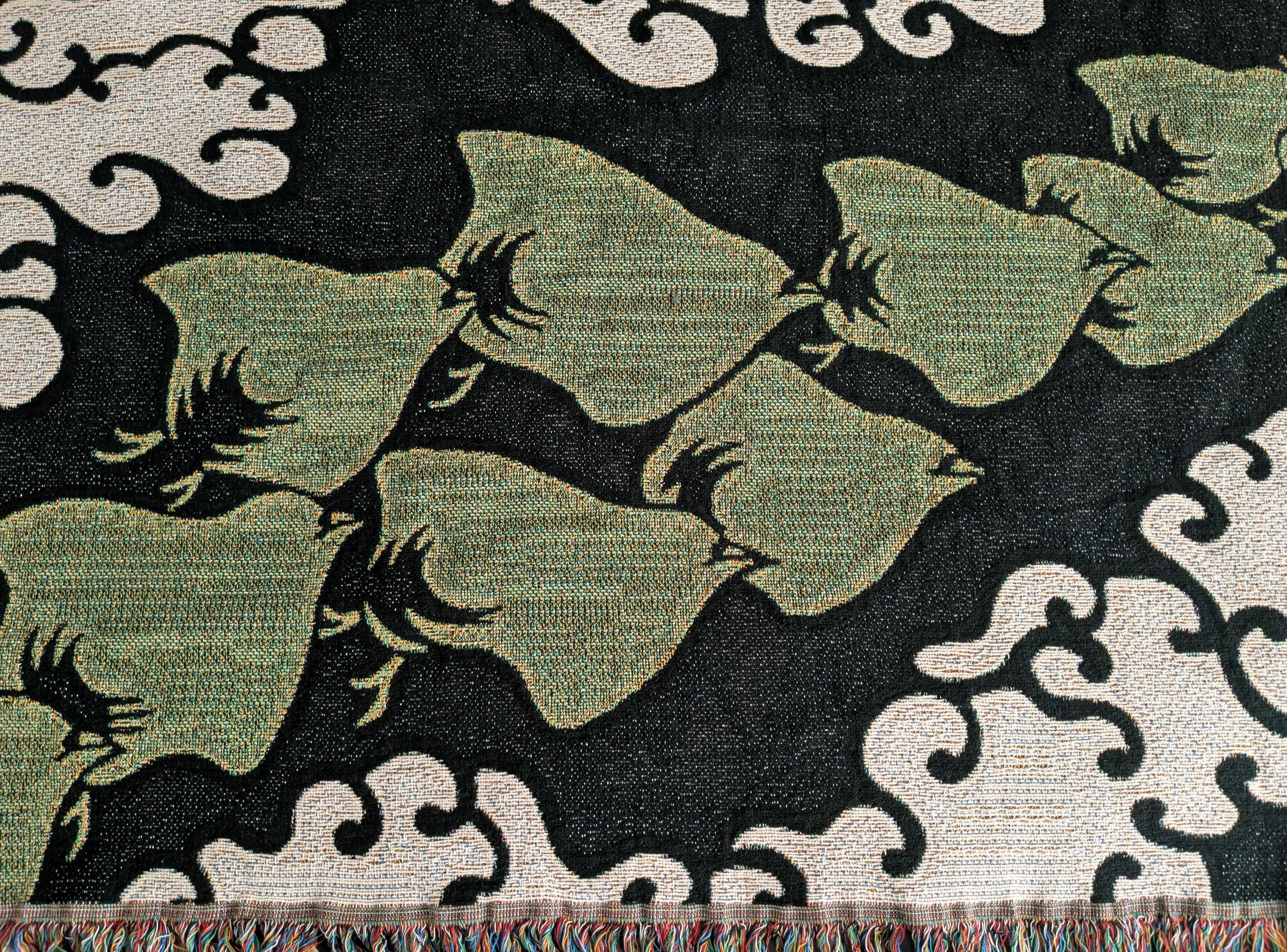 The chrysanthemum blanket is so stunning - I've been keeping mine in my office for when it gets a bit chilly. I have the Fiesta blanket too, same size, but the chrysanthemum one has white fleece on the back. Also, my review photo isn’t showing the color right- it’s definitely a golden yellow and not greenish. Shipping was faster than I expected to the west coast, esp with these shipping from London. Highly recommended!